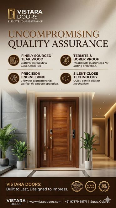 Vistara Doors specializes in manufacturing durable wooden doors suitable for commercial and industrial applications. Our products are designed to ensure safety, security, and longevity for your business premises.